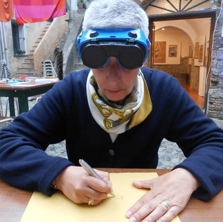 Disegno “cieco”. Si traccia ciò che la mente visualizza, senza precisione né controllo. È un “disegno del pensiero”, uno “scarabocchio della memoria”: il risultato sorprende sempre.