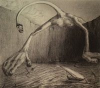Una visione che si puo' spostare all'interno dell'esistenza umana e andare a delle profondita' dove le dimensioni e le regole fisiche non contano piu'. La dimensione del pensiero... L'assurdo.