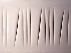 Lucio Fontana – che invece di aggiungere, tagliava.Una composizione spaziale nel vero senso del termine.