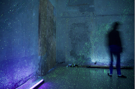 Un luogo senza tempo, meditativo, ogni superficie dello spazio è dipinta (soffitto e pavimento compresi) usando vernice a lumen. La pittura è una fedele riproduzione del cielo stellato del periodo espositivo. Il pubblico entra al buio, un timer attiverà delle luci ultraviolette per circa 1 minuto e per circa un altro minuto le luci saranno spente in modo da attivare la vernice che creerà un effetto di luminescenza in cui il pubblico si sentirà sospeso in un reale ambiente spaziale. L'interno della stanza sarà soronizzato con un'istallazione audio complementare di vari suoni della nostra galassia realizzata da Alessandro Fara. Proiettato all'esterno della stanza in loop un video-arte di Alessandro Fara che rappresenta la sua visione personale dell'istallazione di Michele di Erre.